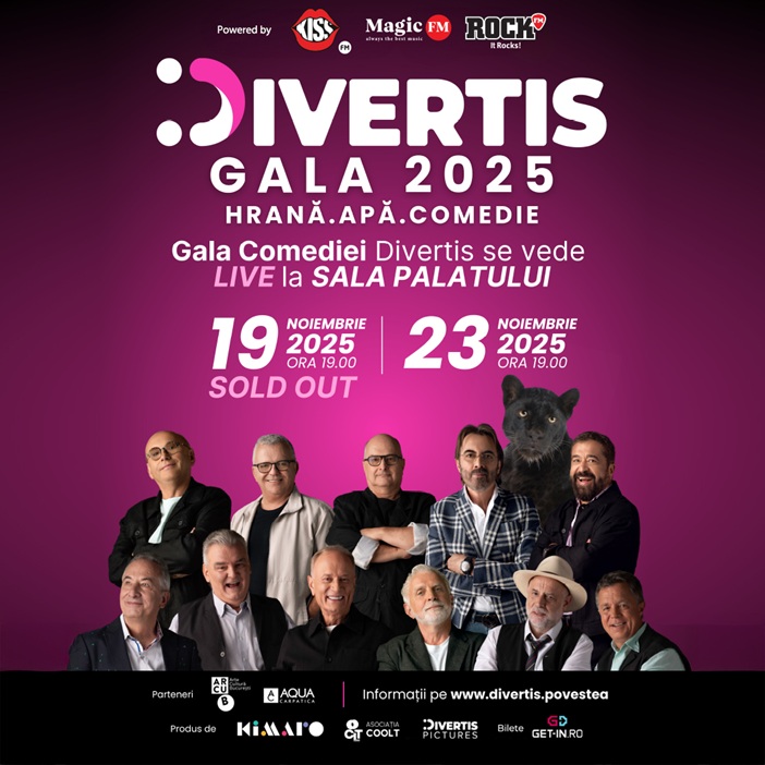 „Divertis. Gala 2025 – Apă, Hrană, Comedie” revine la Sala Palatului pe 23 noiembrie, după ce primul lor show, de pe 19 noiembrie, este SOLD-OUT!