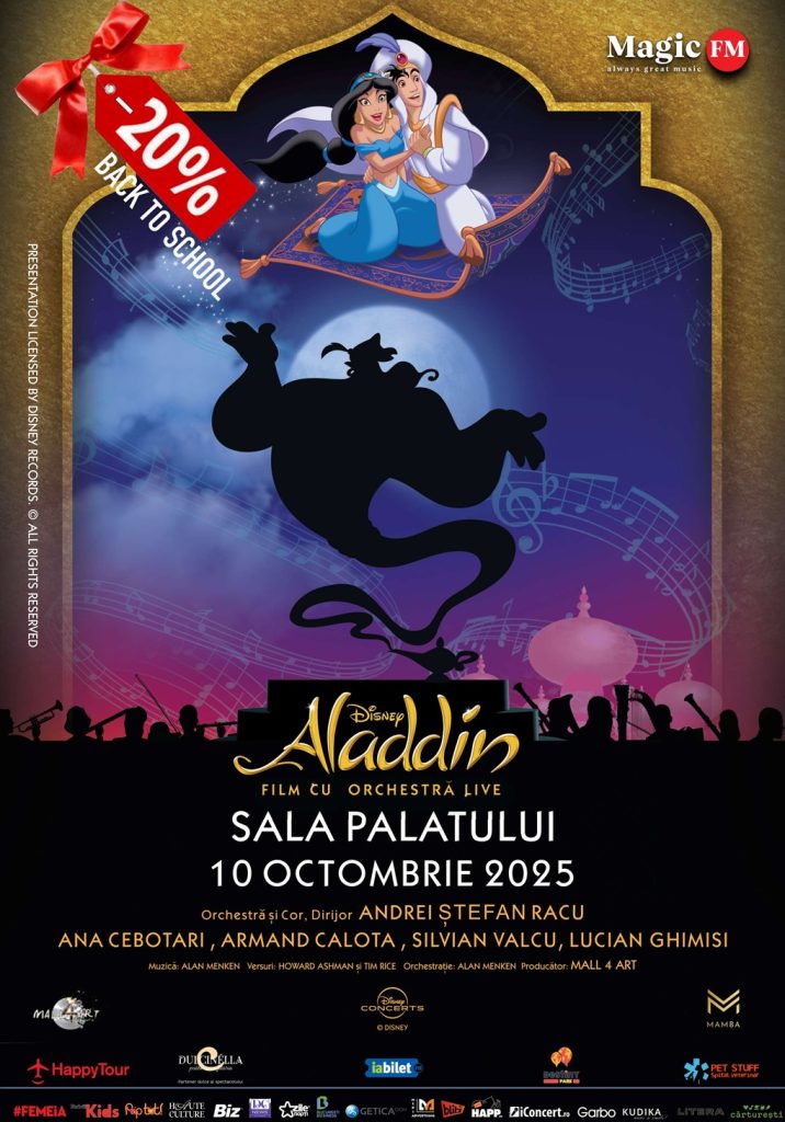 Biletele pentru Disney – Aladdin in Concert Live to Film sunt încă disponibile pe iabilet.ro, și pot fi achiziționate la prețuri reduse în cadrul ofertei „Back to School”.